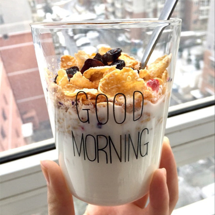 1 pcs Lovely Glass Breakfast Cup Coffee Tea Milk Yogurt Mug Creative Good Morning Mug Gifts 450ml,Glass coffee mug travel cup